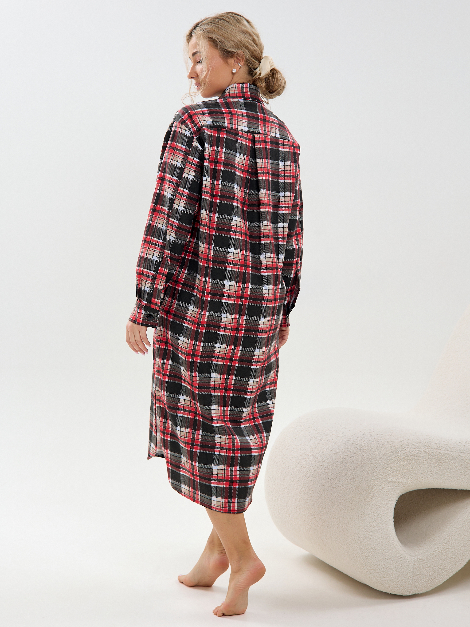 Халат-рубашка женский фланелевый Клетка
