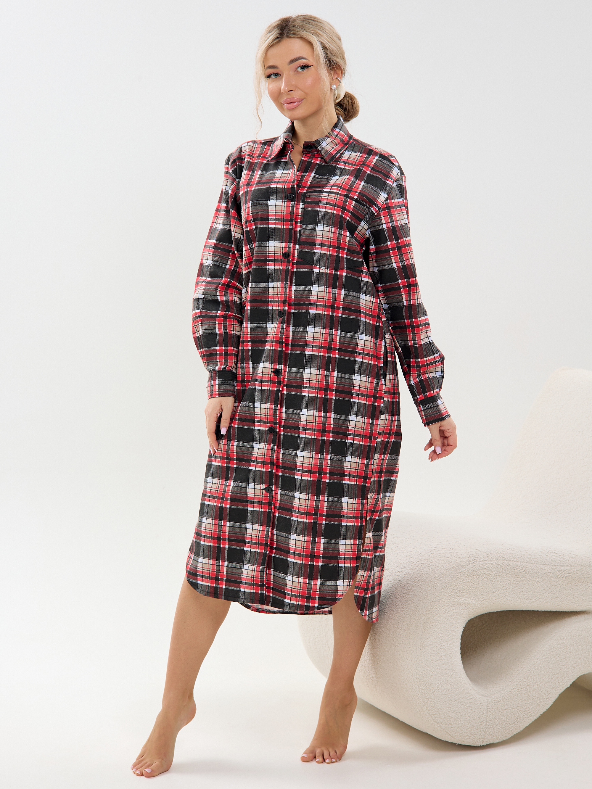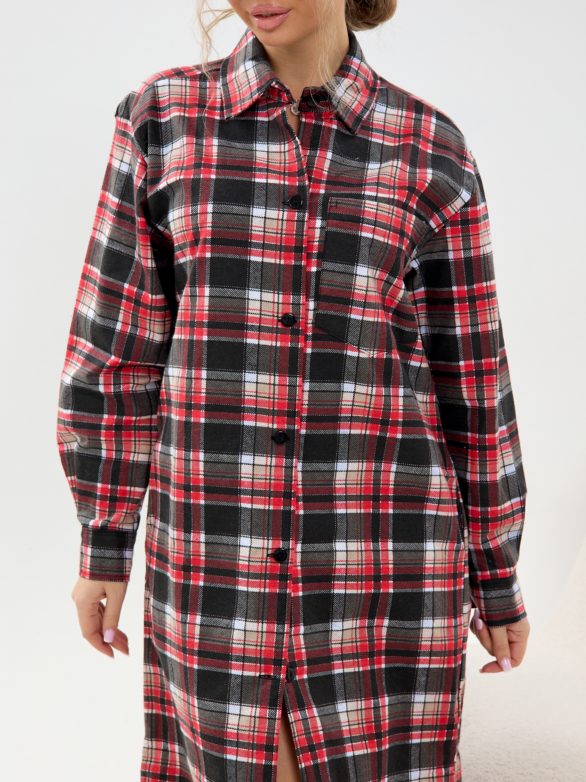 Главная Женская одежда Халаты Халат-рубашка фланель м41клетка