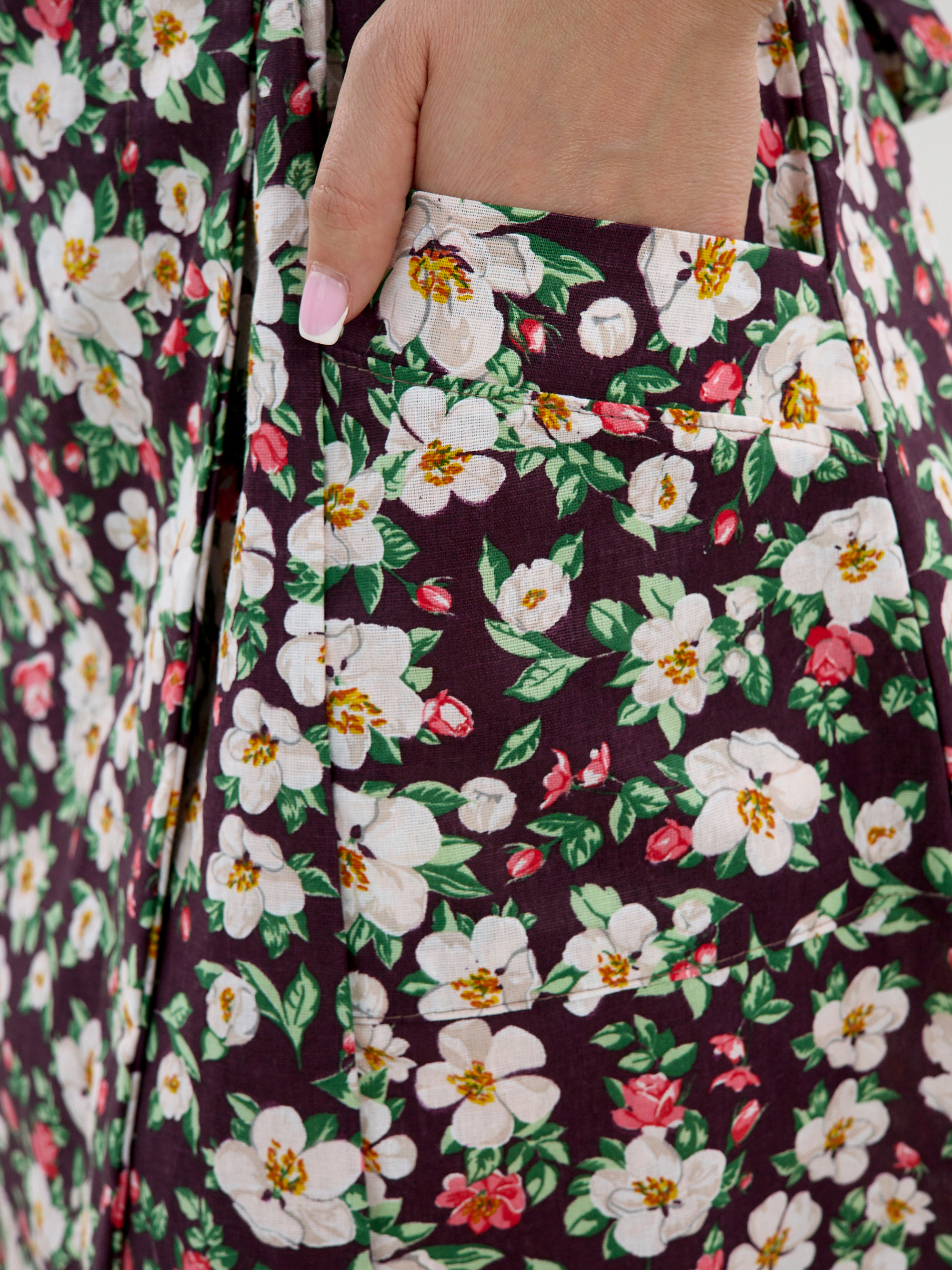 Халат домашний бязевый от компании Лето-Текс, выполнен из натурального хлопчатобумажного материала из бязи - 100% хлопок. Ткань бязь изначально жесткая, после стирки становится мягче. Халат женский на запах с накладными карманами и спущенным плечом. Халат запашной ниже колена, рост модели на фото 165 см., а ростовка халата 170см. Достоинствами такого халата для дома являются его экологичность и безопасность, он не вызывает аллергии, кожа в нем дышит, а влага впитывается. Домашний халатик отлично подойдет для дома, надеть с утра или после ванны, не сковывает движений и отлично сидит по фигуре и подчеркивает талию. Халат летний женский длинный с коротким рукавом подойдет для беременных роддома, для кормления грудью, для кормящих мам. Халат больших размеров хороший подарок на день рождения 8 марта для мамы и бабушки. Халат рабочий отличный вариант для дачи и в качестве униформы.