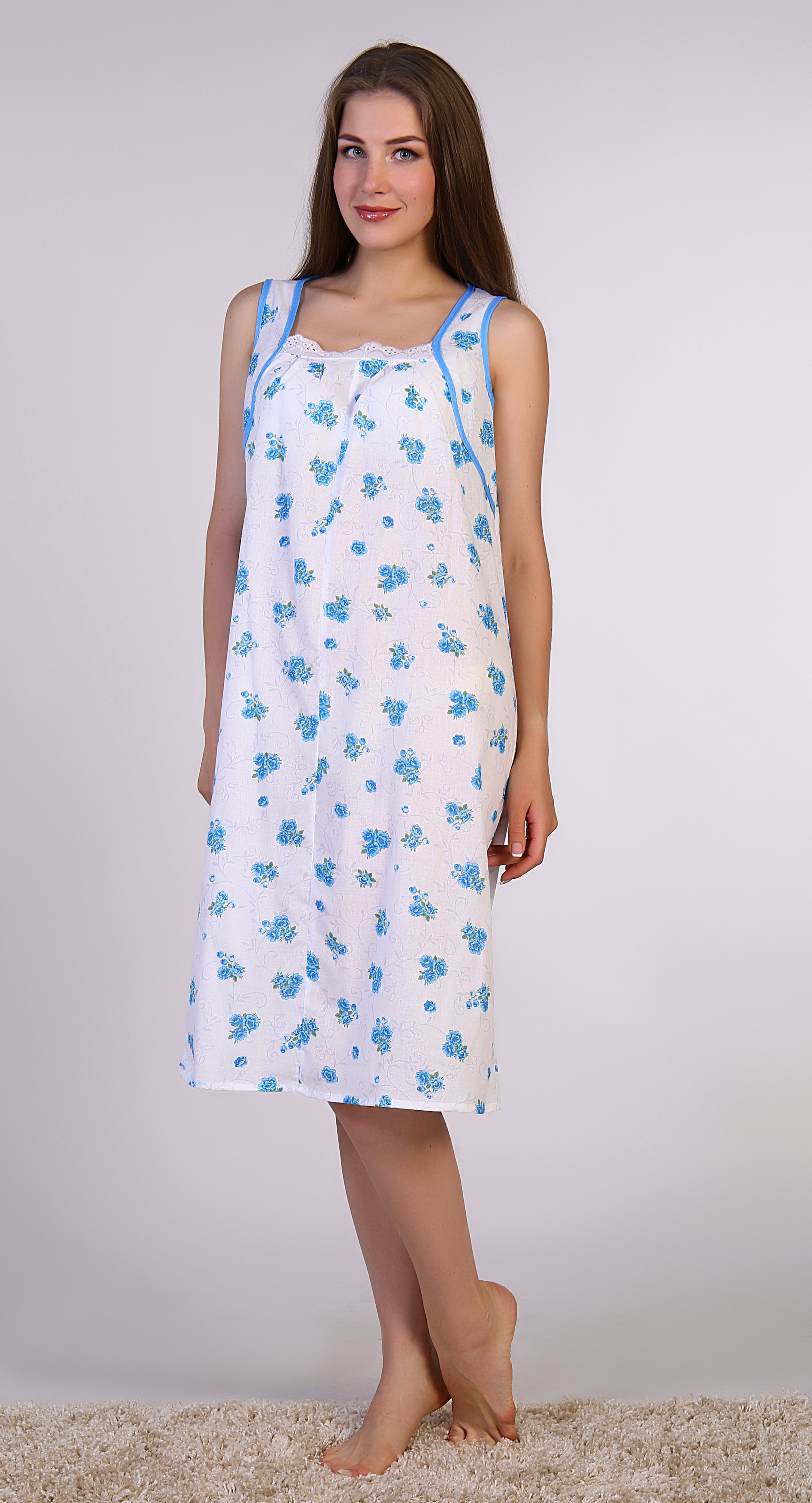 Ночная сорочка женская из ситца голубая