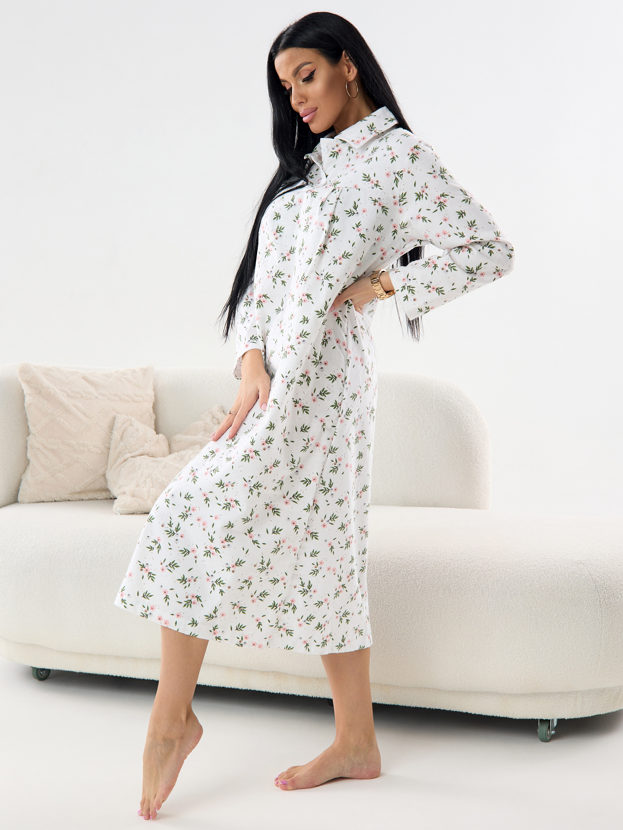 Ночная сорочка женская из фланели Цветы